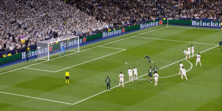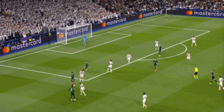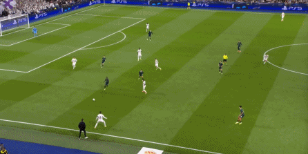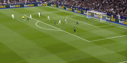 这个时候你就会发现,尼科独木难支,谢尔基也帮不上忙,所以贝林厄姆将球交给罗德里戈,第一球就这么到来了: