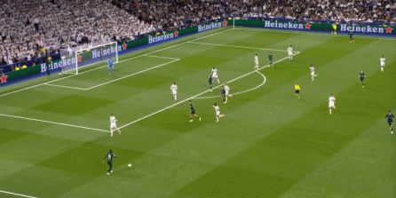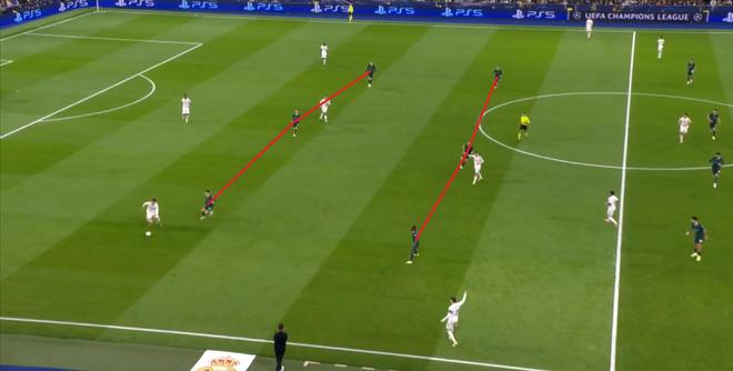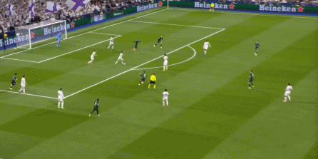 当然了,皇马此役没有找到多少打尼科身侧空间的机会,因为谢尔基内收的幅度很大,但也因此,皇马获得了打击曼城弱侧空间的机会,借助这一点完成了多次提速和推进: